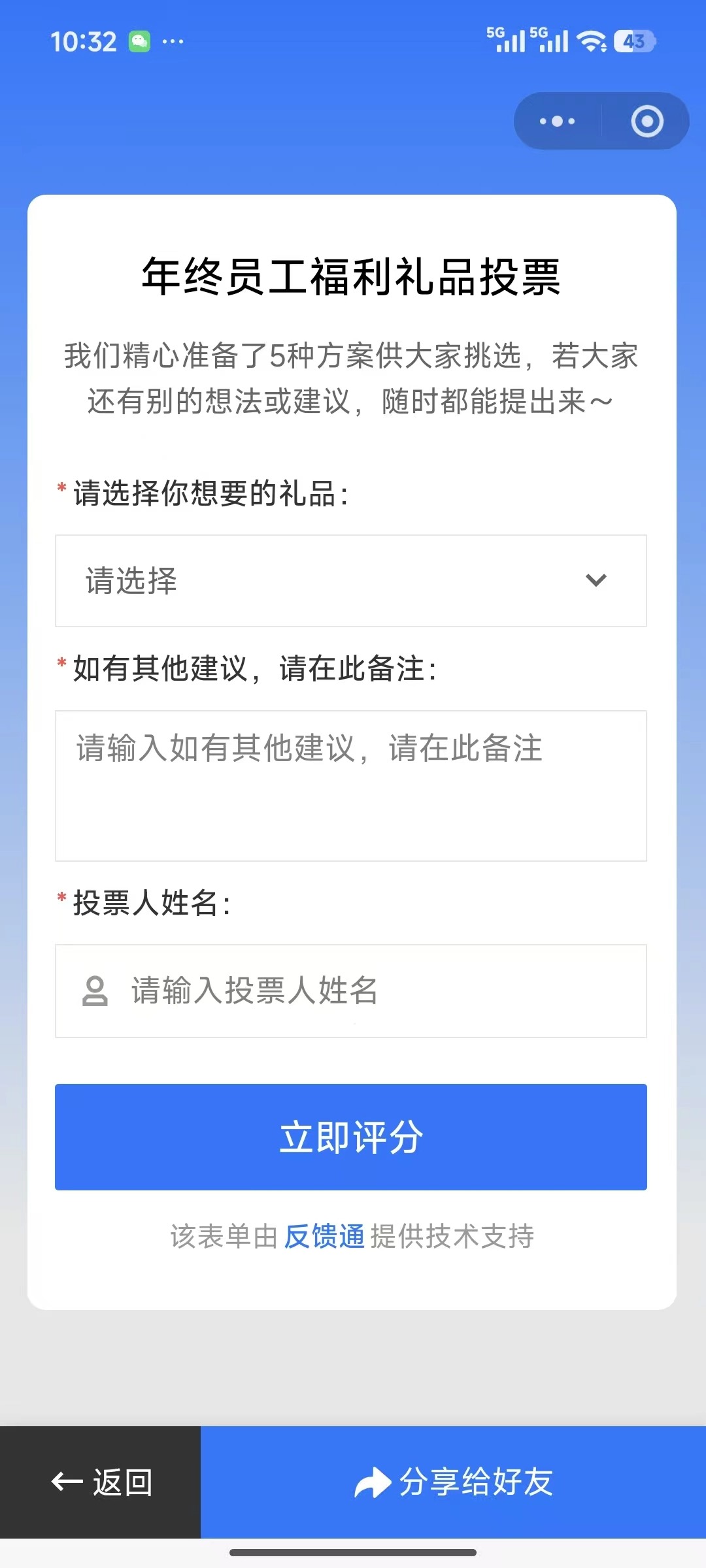 “微反馈”员工福利礼品投票表单使用说明/流程/常见问题