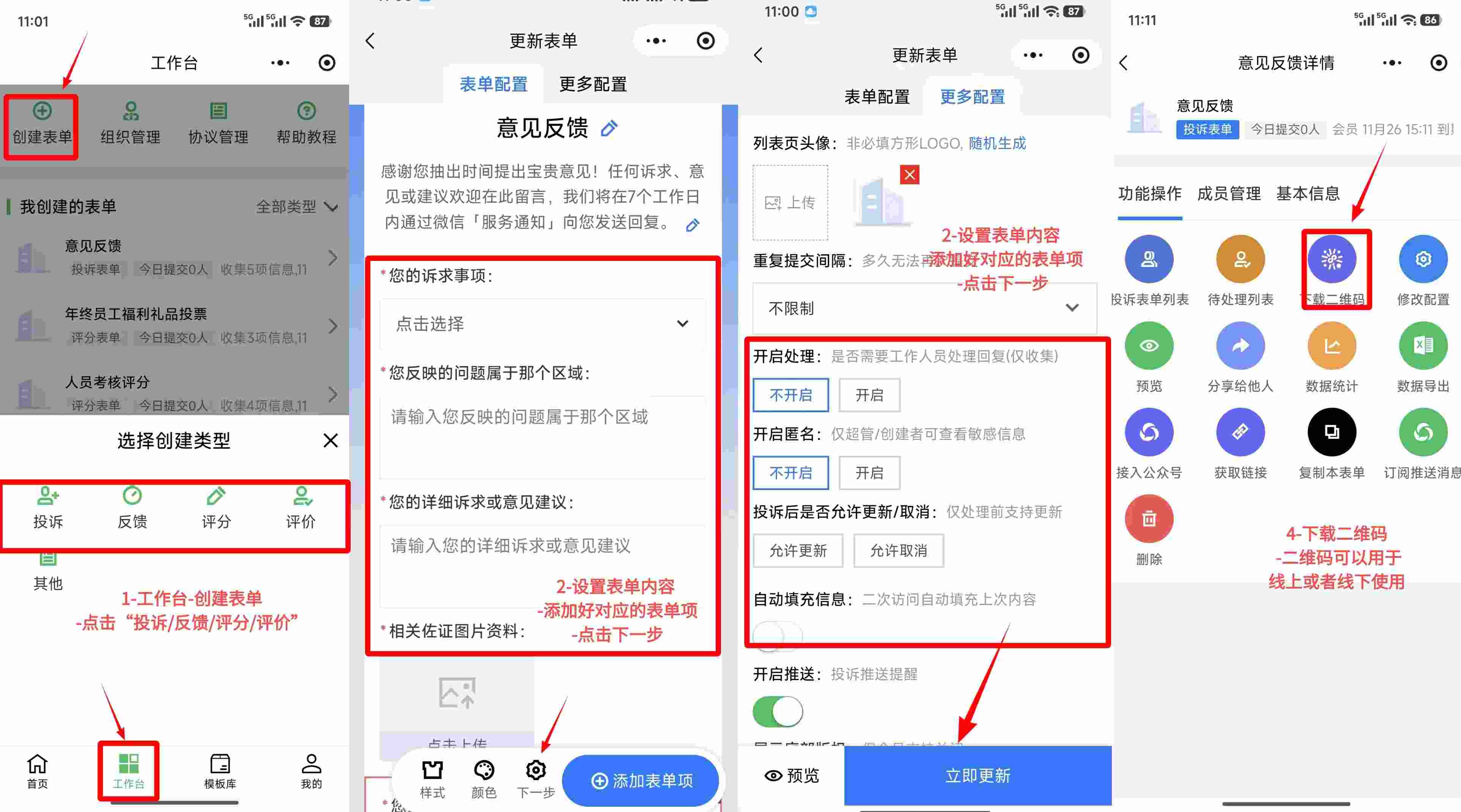 •工作台-创建表单-点击“投诉/反馈/评分/评价”