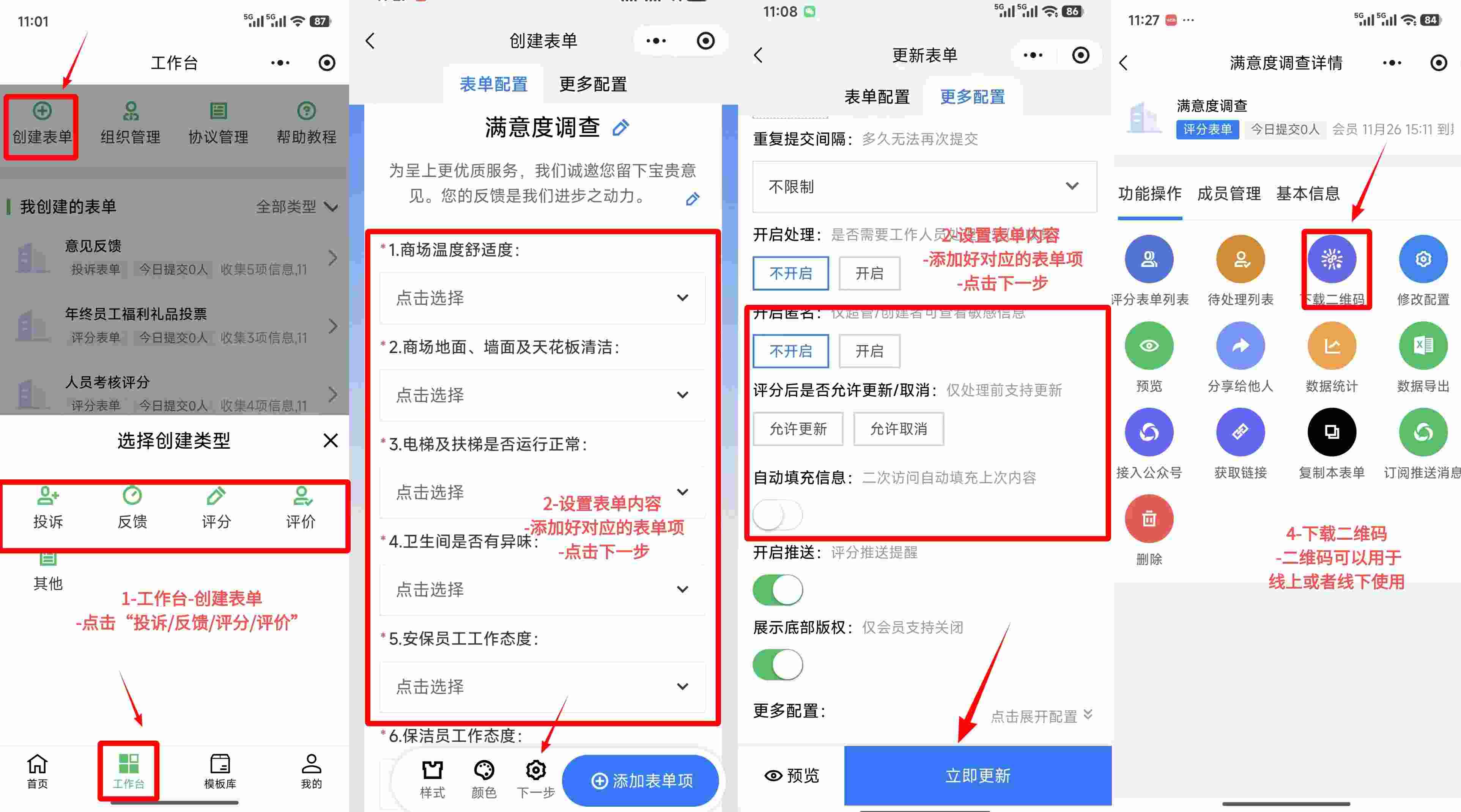 •工作台-创建表单-点击“投诉/反馈/评分/评价”